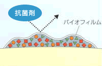 | 細菌バイオフィルムとは「多種多様の細菌が複雑にからみあってきわめて安定した集落を作り、一種の共棲関係にあるような状態」をいいます。このフィルムは、細菌が分泌する多糖体に守られ、強力に付着するため、歯ブラシではなかなか取り除くことができません。また、他の異物の侵入を拒否する性質があるため、塗り薬やうがい薬などの効果も限定的です。 |
